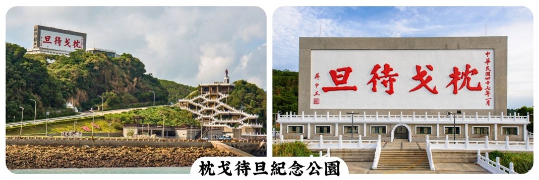 【枕戈待旦紀念公園】「枕戈待旦」這個成語源於古代,意思是隨時準備迎接敵人,形容警戒、隨時待命的狀態。這正是馬祖在冷戰期間及兩岸對峙時期的寫照。當時,馬祖島作為軍事前沿島嶼,軍民皆需隨時做好防備,守衛家園。當台馬輪駛進馬祖福澳港,倚著船桅大紅色的四個「枕戈待旦」總會印入眼簾,巍巍聳立在南竿的福清嶺上。