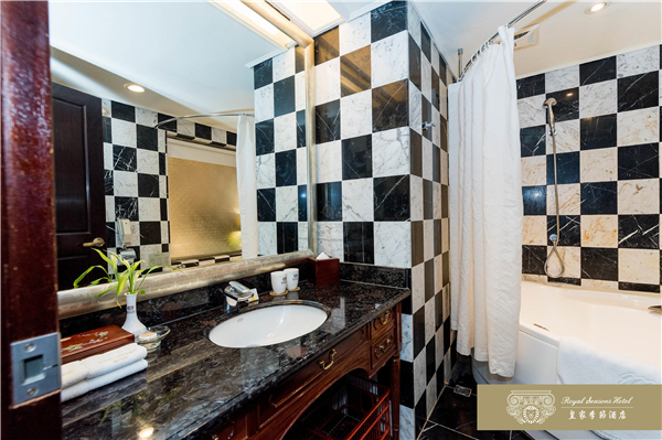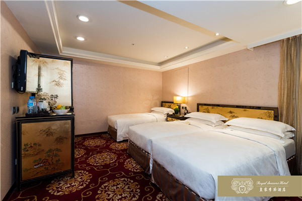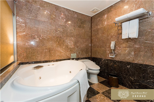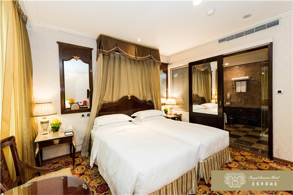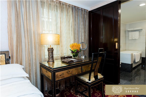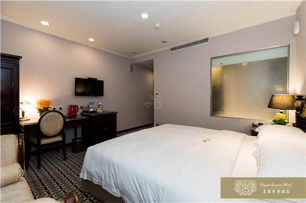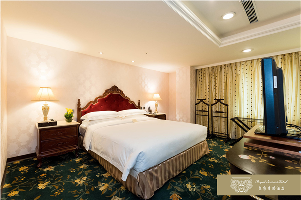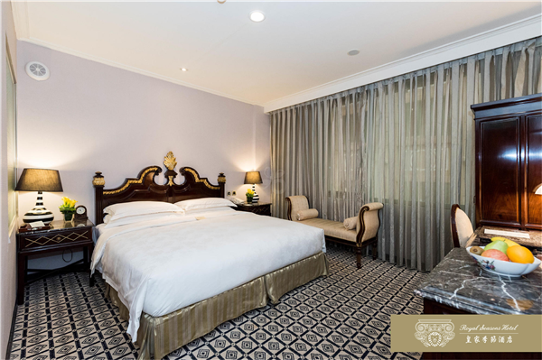 和名百年迪化街呎尺相鄰,台北車站.寧夏夜市.台北捷運中山站及大型百貨公司皆以徒步方式即可迅速抵達。皇家季節酒店於2007年12月推出台北第二館,兩館相鄰共110間以客房,推開房門,迎接您的是一室溫暖的燈光。從室內陳設、傢具到擺飾,處處是精湛工藝的最高表現,沒有金碧輝煌的燦爛,卻有低調奢華的美感。深色帶著光澤的進口紅木傢具,散發特有的歷史風華,也給旅人沈穩的安心感,由天花板、壁面到腳下柔軟的地毯,不同樣式的花紋巧妙地交織在一起,充份展現文藝復興的均衡美感。床邊木質的飾品收納盒,讓女性的首飾或手錶,也有貼心的棲身之處。滿室的靜謐浪漫伴你酣然入夢鄉。