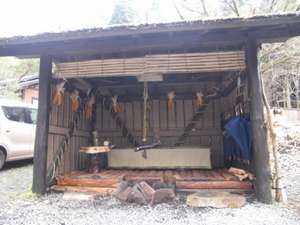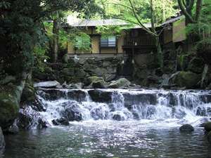 完全獨立的客房全部皆附有溫泉,入住期間可隨您盡情使用!包場浴池也可免費借用。此外還有位於溪流旁的大露天浴池,讓您徹底享受泡湯之樂。到了楓紅的季節還可享受賞楓之樂,請您盡早預約。本館的虹鱒魚生魚片以及生馬肉料理得到相當多的好評。