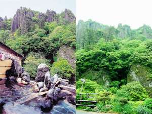 本館建築在松江藩主、松平不味公的別墅遺址上、是位於祕境的旅館。有大約3萬年前的奇岩、和柱石,為獲得國家認定的名勝絕景,您可以在此欣賞得到,有提供免費的包場露天浴池!前往出雲大社、須佐神社等處的交通極至方便。全部客房均有完備的DVD播放裝置,可以免費使用!