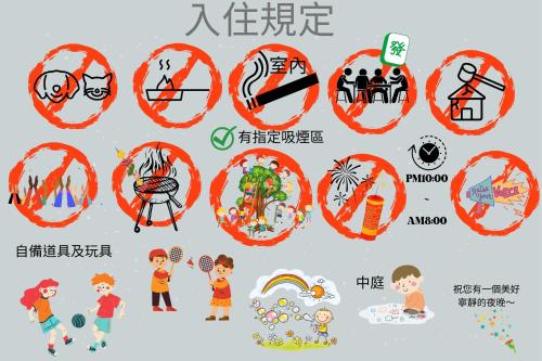 住宿內嚴禁舉辦派對,且請勿於10:00 PM- 8:00 AM間大聲喧嘩。