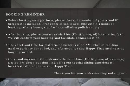 請注意:-加床僅適用於部分客房,如有此需求,請提前告知民宿。聯絡詳情請見預訂確認信函。-民宿擁有 4 隻狗和 1 隻貓。請提前告知您預計抵達的時間。您可以在訂房時使用特殊要求方框通知對方,或透過確認函上提供的聯絡資料直接與住宿處聯繫。客人需在辦理入住時出示附照片的身份證明文件和信用卡。請注意,特殊要求將視實際狀況安排,有可能會產生額外費用。客人需於入住前轉帳預付訂金,以作為訂房擔保。住宿處會在完成預訂後聯繫您,提供銀行轉帳相關指示。此住宿不接受群聚打牌、看運動賽事、單身派對等類似聚會。