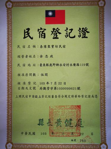 No. 119, Yongle Road,Luye Township,Taitung,Taiwan,955