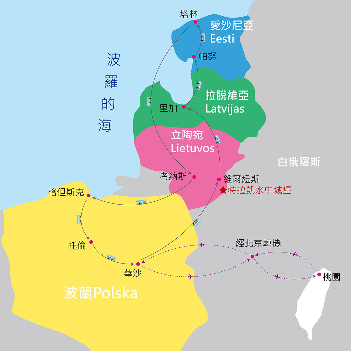 4. 行程所列之旅遊交通費用。