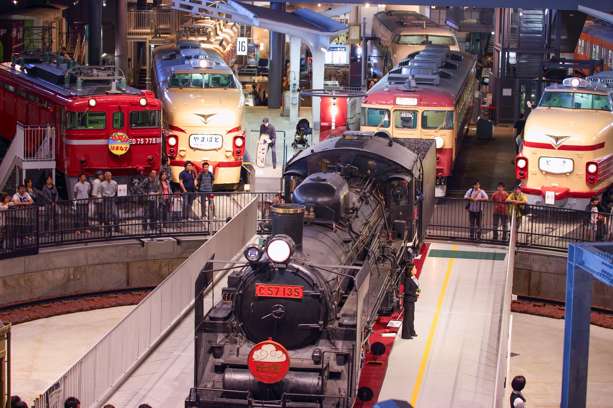 位於埼玉市的鐵道博物館是鐵道迷必訪的熱門景點。館內分為五個展廳,分別以「車輛」、「科學」、「工作」、「歷史」及「未來」為主題,從多種角度為來訪者講述鐵道與人的故事。在館內最大的展廳「車輛展示舞台」內36台實體車輛一字排開,場面非常壯觀。可以通過音響、光線和映像,通過視覺和聽覺效果,逼真地再現蒸汽火車、電氣火車,以及新幹線還有電車等各種列車當年的模樣,強烈的臨場感讓一般參觀的遊客到火車迷皆興奮不已。