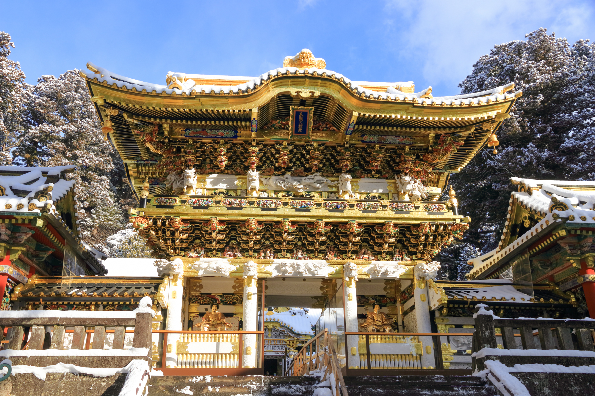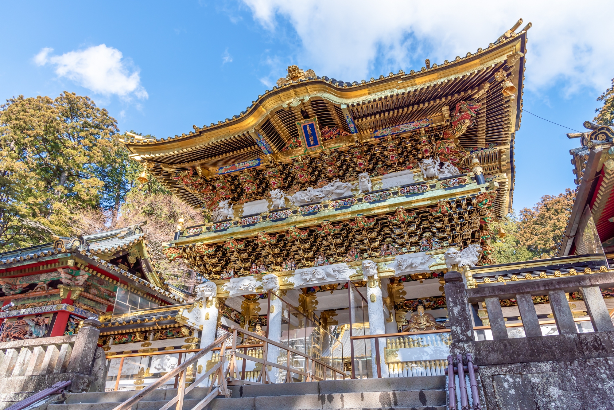 是日本最具代表性的神社之一。與「輪王寺」、「二荒山神社」一同以「日光的神社與寺院」之名被收入世界遺產名錄。祀奉德川家康為主神的日光東照宮,也以日本首屈一指的能量景點而聞名。如此名聞遐邇的日光東照宮,其最大的魅力所在,便是展現高度日本傳統技術與藝術性、豪華絢爛的建築之美了。境內的建築物均施以華麗的裝飾,各處並裝飾著數不清的雕刻作品。除了「眠貓」與「三猿」、「陽明門」等知名觀光景點,日光東照宮還有著許多其他的隱藏版看點。也難怪在55棟建築物之中就有8棟被指定為國寶、34棟被指定為重要文化財,著實令人折服。
