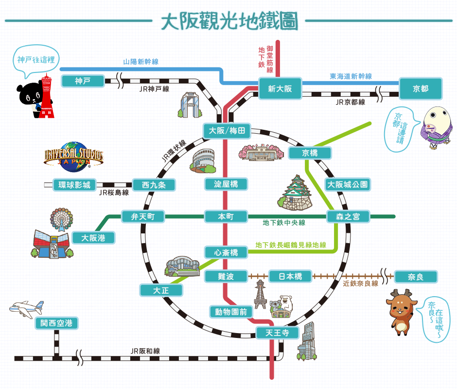 交通信息| 關西利木津巴士、 南海電氣鐵道、 JR-West西日本鐵路、 阪急電鐵、 阪神電車、 大阪單軌電車 、 山陽電車、 京阪電鐵、 京都地鐵圖、 大阪地鐵圖、 關西週遊卡中文官方網站