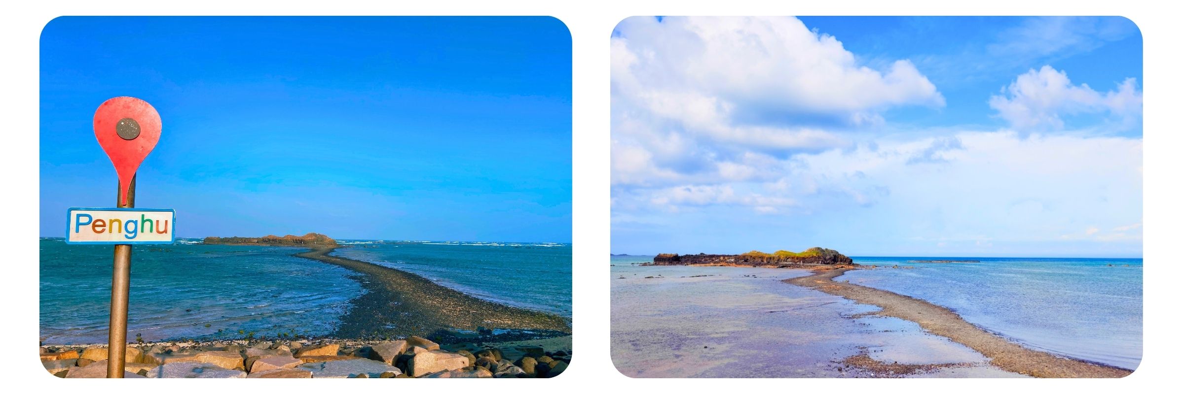 【跨海大橋】跨海大橋無疑地是澎湖的象徵,譽為東亞第一跨海大橋,兩端橋頭各建有半圓形拱門一座,橋身如長虹凌波。這裡是來到澎湖必定要留影的地方喔!