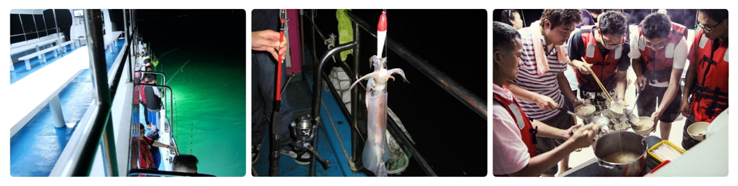 活動包含:船票、釣具、夜釣小管體驗、品嚐小管手工麵線&小管生魚片