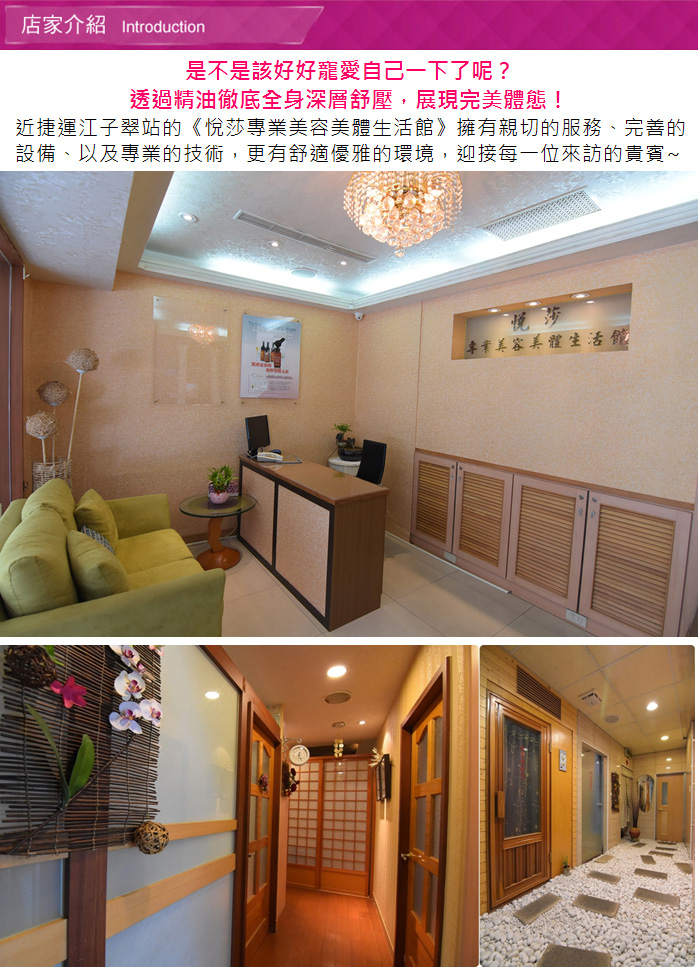 悅莎專業美容美體生活館,近捷運江子翠站的《悅莎專業美容美體生活館》擁有親切的服務、完善的設備、以及專業的技術,更有舒適優雅的環境,迎接每一位來訪的貴賓~