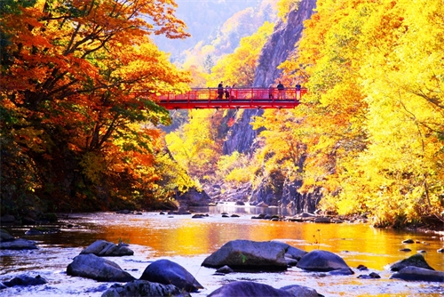 定山溪是北海道札幌市近郊的一個知名賞楓勝地,以其豐平川溪谷和紅葉交織的美景而聞名。 可沿著定山溪散策路,一邊散步一邊欣賞紅葉,享受悠閒的賞楓時光。