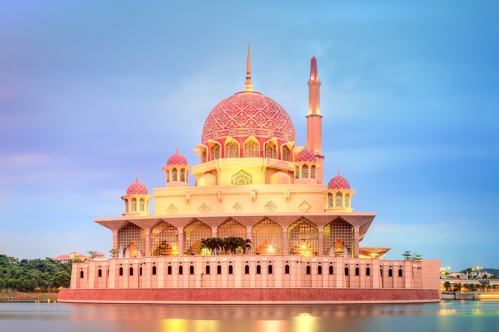 全球藝術設計最具現代化的清真寺之一,建成於1999年。這座四分之三建於湖面上的清真寺是馬來西亞目前最大的清真寺之一,可以同時容納一萬兩千人在此做禮拜。因為採用罕見的粉紅色以及座落於湖上的特殊造型,因此被稱為粉紅水上清真寺也被稱爲普特清真寺。