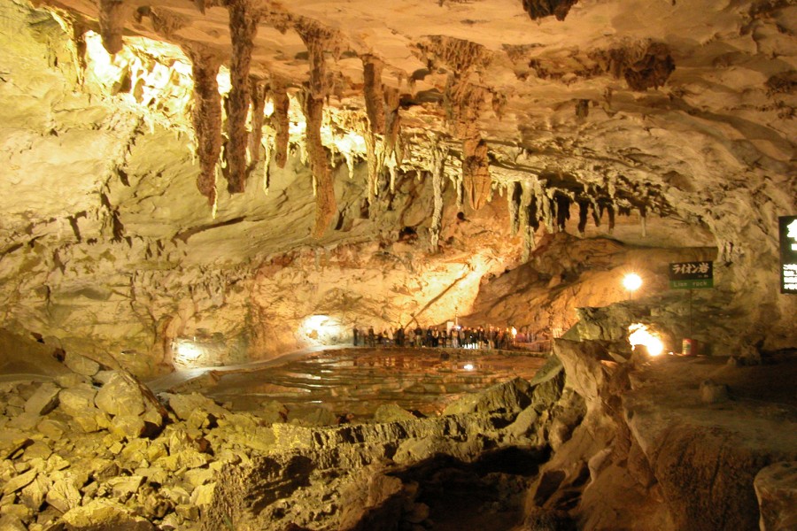 位於秋吉台地底下100多公尺的秋芳洞,是亞洲屈指可數的大型鐘乳石洞,耗費30萬年歲月塑造而成的大自然藝術品,如佔地廣大的千疊敷、有洞內富士之稱的廣庭、看似許多盤子並排在一起的『百枚皿』及高約145公尺的『黃金柱』,還有350多個鐘乳石洞可參觀,大自然創造的奇幻景觀令人瞠目。長約1公里的觀光遊步道,欣賞鐘乳石平穩的色彩組合和洞窟中發出的微弱水聲,感覺鍾乳石洞確實每天一點一滴地在變化。
