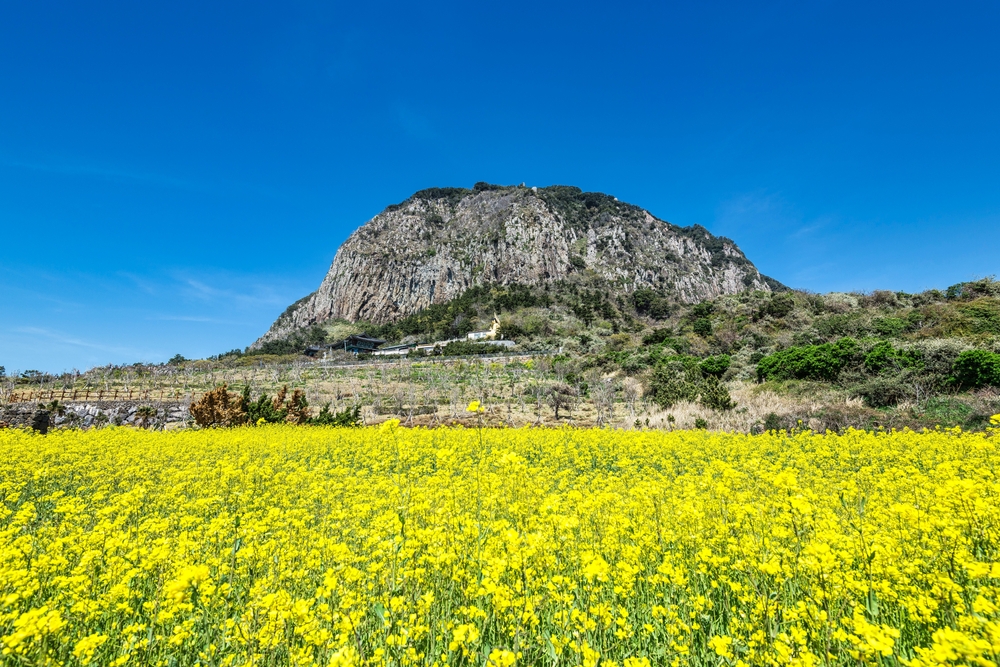 ● 5000年前海底火山爆發而形成的高聳巨岩~城山日出峰(火山口巡禮或海女表演)。