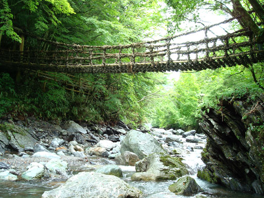 四國中部的祖谷地區,自然壯觀的美景為日本三大秘境之一,祖谷屬於劍山國定公園,四國第二高峰的劍山為四國山地的群峰所包圍,形成吉野川源頭的祖谷川的清流,蜿蜒曲行於群山之間形成深深溪谷。祖谷川上長約45米、寬約2米,距離水面約15米的葛藤橋,是用藤蔓編製的。是日本三大奇橋之一,被指定為國家的重要民俗文化財產。
