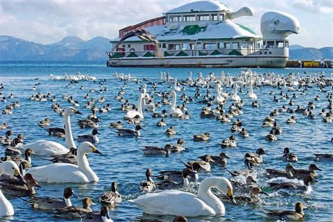 豬苗代湖為磐梯山火山活動所形成的淡水湖,是日本第四大湖。像大海一樣寬闊的湖面十分清澈透明,故有「天鏡湖」之稱。天氣晴朗時,磐梯山的倒影映在湖面,襯著如珍珠般鑲在湖岸的白色沙灘,美得讓人心曠神怡!冬天時,北方天鵝群飛來過冬,雪白的天鵝一隻隻降落、於湖面戲耍的姿影,讓豬苗代湖更添幾分清麗動人!
