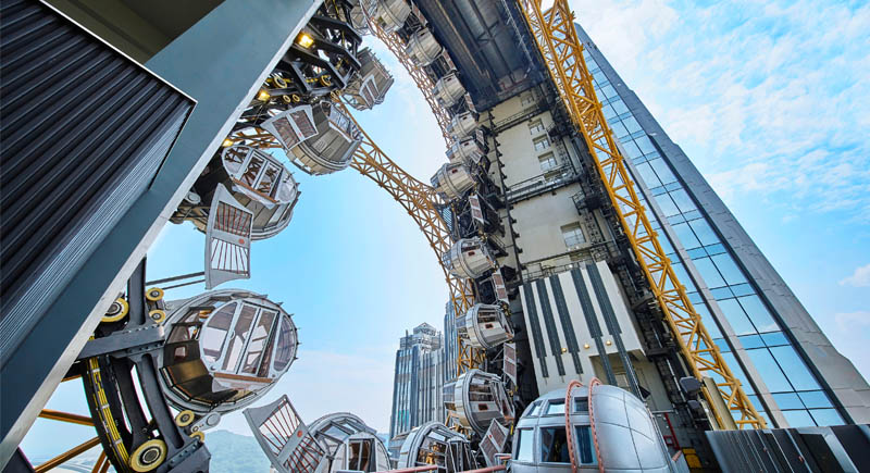 登上高懸130米、全球最高的8字形摩天輪,澳門景致更盡收眼底。 聳立於兩座酒店大樓之間的矚目地標「影滙之星」設計概念源自荷里活巨製之震撼場景,恍如兩顆熾熱行星衝擊大樓外牆,留下了一個近乎完美的「8」字。「影滙之星」有17個復古科幻為主題的觀景廂,每個包廂可容納多達10人。