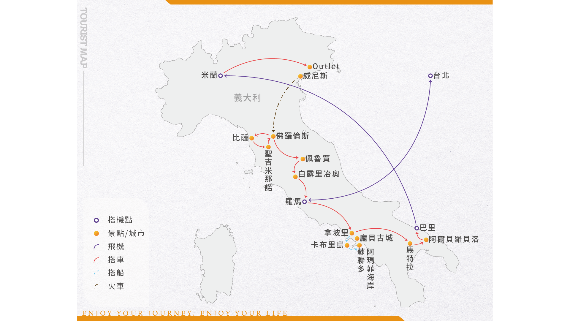 維洛娜 Verona-維洛娜剛好位於阿爾卑斯山麓上的最低隘口,成為一個南北往來的重要地點,也是莎士比亞筆下「羅密歐與茱麗葉」故事的背景地。進入舊城之後,你可以漫步浪漫迷情小巷街情,幾乎每一個轉角都有驚喜,全義大利保存最完整的競技場,亦位於這個美麗的城市,也是每年七月當地音樂節舉辦場地。茱麗葉故居 Juliet's House-是維洛娜最受歡迎的景點之一,庭院中有一尊茱麗葉的青銅雕像。傳說撫摸她的右胸可以帶來好運,讓有情人終成眷屬,因此雕像的該部位被摸得金光閃閃。 雖然故事是虛構的,但這棟建築本身是可追溯至13世紀的古老建築,充滿了浪漫的想像。卜納廣場 Piazza Bra-是維洛娜最大且最重要的廣場,也是城市的中心門戶。東側就是雄偉的阿雷納競技場 (Arena di Verona),這座古羅馬遺跡是廣場最引人注目的焦點,至今仍是世界聞名的戶外歌劇表演場地。阿雷納廣場 Arena di Verona-義大利現存第二大的圓形競技場,規模僅次於羅馬競技場,建於公元一世紀。雖然曾是角鬥士競技的場所,但如今它已成為世界級的露天歌劇院。每年夏季(約7月至9月),競技場都會舉辦著名的維羅納歌劇節,吸引數十萬歌劇愛好者前來觀賞《阿依達》、《卡門》等經典劇目。競技場的磚石結構保存良好,橢圓形的觀眾席可容納超過兩萬名觀眾,使其成為維羅納最具代表性的地標。☆NOVETA DE PIAVE DESIGNER OUTLET盡情雪拼☆ 進到義大利的OUTLET,聞名世界的義大利時尚可就不再像櫥窗的另一邊那麼的難以令人親近啦!多樣化的國際精品店多達 180 種品牌,包含 Gucci、Prada、Burberry、Tod’s、Coach、 Armani、Michael Kors、Boss、Nike、Adidas、BOTTEGA VENETA、Calven Klen、Fendi、Furla、 GUESS、Moschino、Diesel、D&G、Fossil...等,不需等到折扣季,即可享受名品的魅力,折扣價的實惠。 https://www.mcarthurglen.com/en/outlets/it/designer-outlet-noventa-di-piave/威尼斯 Venice-地球上獨一無二的水上大城!擁有150條運河與400餘座橋樑交織的水幻迷離世界,任誰不癡醉!威尼斯美麗的姿影,如光影歲月般難醒~也是莎士比亞作品中【威尼斯商人】的故事背景所在地。這個舉世聞名的城市,其最大特色是在街道上看不到汽車行駛、也無車聲交錯的喧囂,所有的交通工具只存在於水面之上。 【下車參觀】:維諾那~茱麗葉故居、卜納廣場、阿雷納競技場。